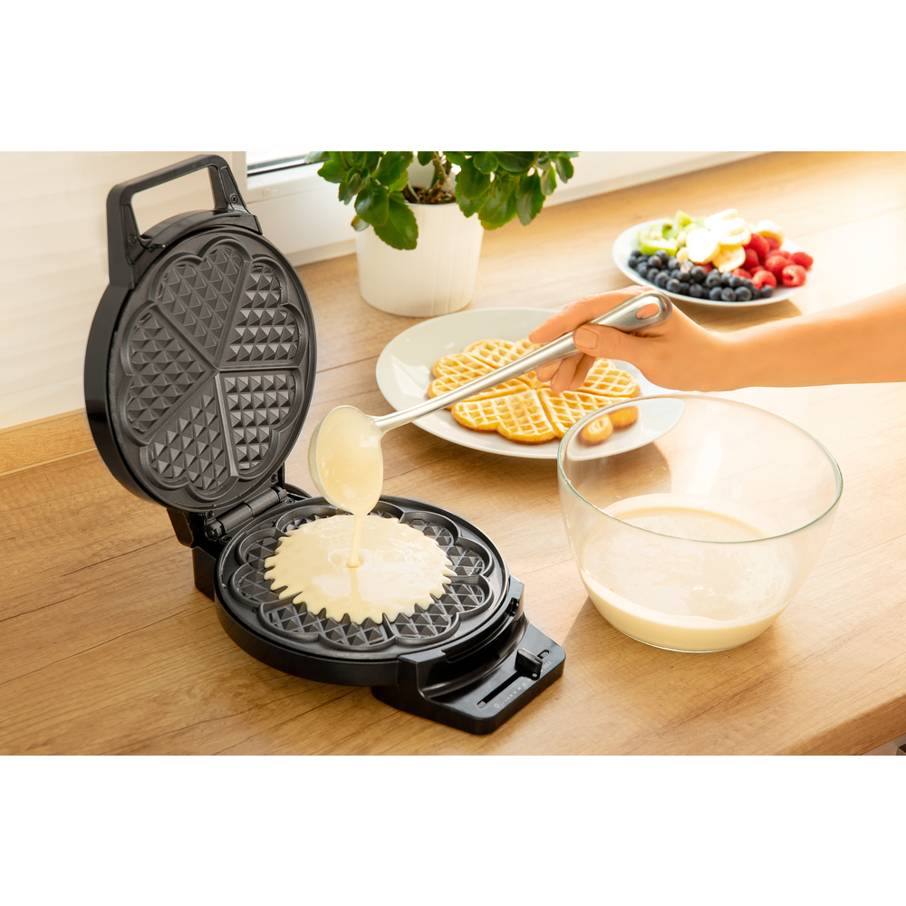 Tosteri për waffle nga marka Sencor vjen me dizajn inox për përgatitjen e 5 waffle në formë zemre. Sipërfaqet e pjekjes pastohen lehtë ndërsa doreza është e izoluar nga nxehtësia. Posedon treguesit e funksionimit dhe të ngrohjes të cilët informojnë se kur është koha gati për të marrë waffle nga tosteri. Për më tepër, ka këmbëza kundër rrëshqitjes, siguresa termike të sigurisë dhe konsum të energjisë 1000W. Dimensionet: 210 x 270 x 85 mm.