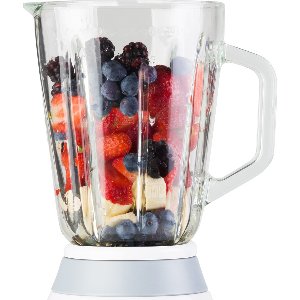 Ky blender nga Sencor ka një enë për përzierje prej qelqi me kapacitet 1.5l dhe sherben për t’i kthyer arrat, farat, frutat dhe perimet në një “bombë” vitaminash për trupin tuaj. Kapak i brendshëm transparent më i vogël për shtimin e përbërësve gjatë përzierjes,Baza e parrëshqitshme me 2 shpejtësi garanton siguri më të madhe, ndërsa pjesët e lëvizshme mund të lahen në enëlarëse. Blenderi ka funksionin e thërrmimit të akullit dhe modalitetin Turbo.