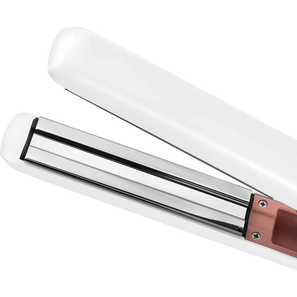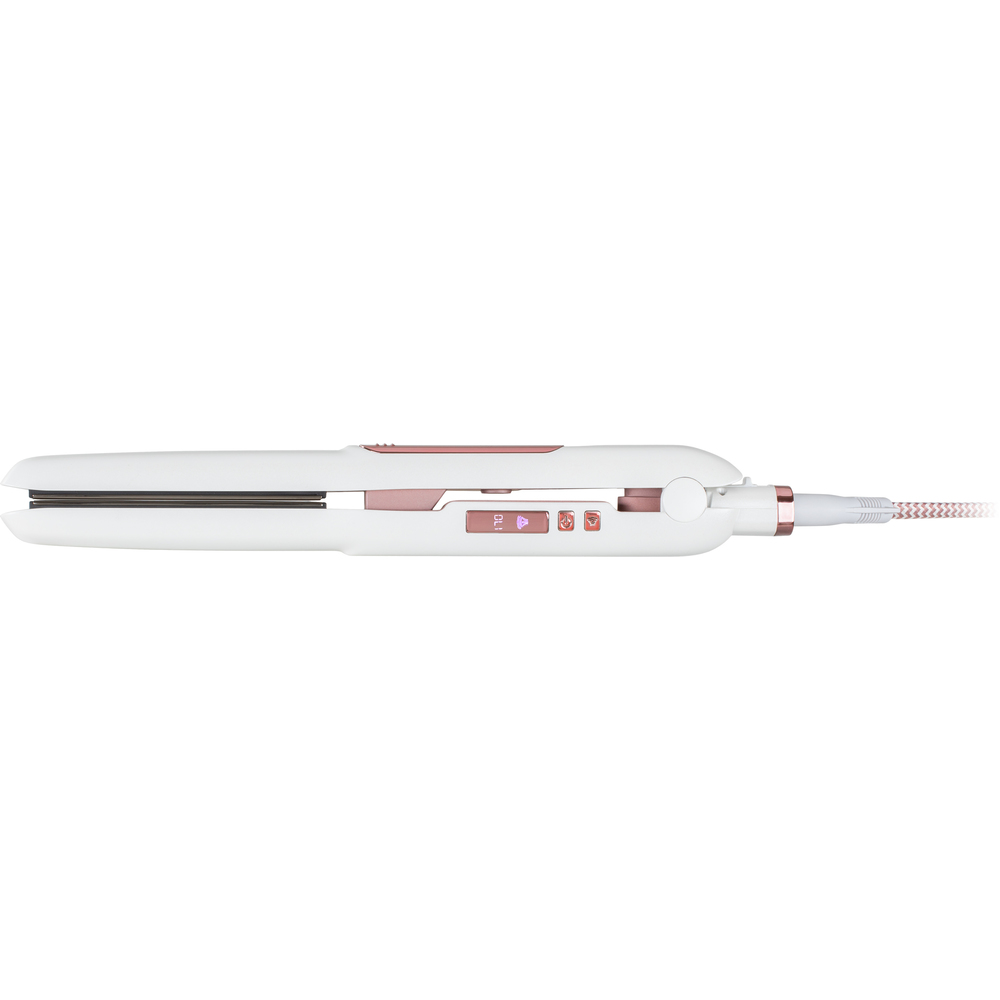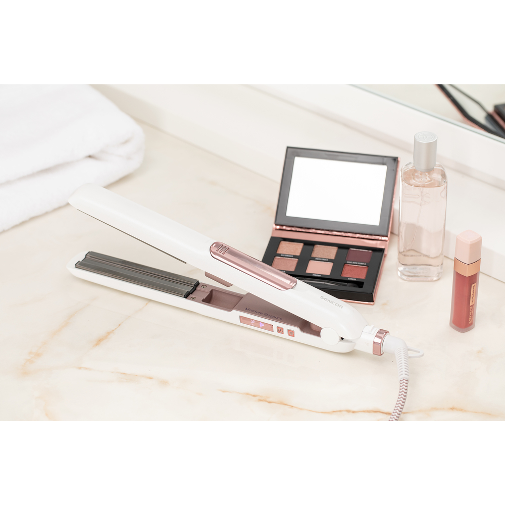 Kjo drejtuese Slim Design është ideal për drejtimin e flokëve dhe formësimin në kaçurrela si dhe lagështimi me avull për kujdesin më të butë dhe një rezultat perfekt. Sipërfaqja e titanit të pllakave të hekurosjes mudëson rehati maksimale dhe rezultate elegante. Ka 4 cilësime të temperaturës 170/190/210/230 °C. Kabllo e rrotullueshme 360° për të parandaluar përdredhjen dhe ngatërriminesi dhe e mbuluar me mbrojtje tekstili për siguri maksimale, gjatësia e kabllit 180 cm për rehati dhe konstruksion ultra i lehtë, vetëm 235 g. Ekran me dritë prapavije të bardhë, Madhësia e sipërfaqeve të hekurosjes: 110 × 27 mm. Dimensionet (gjatësia × thellësia × lartësia): 285 × 30 × 42 mm.