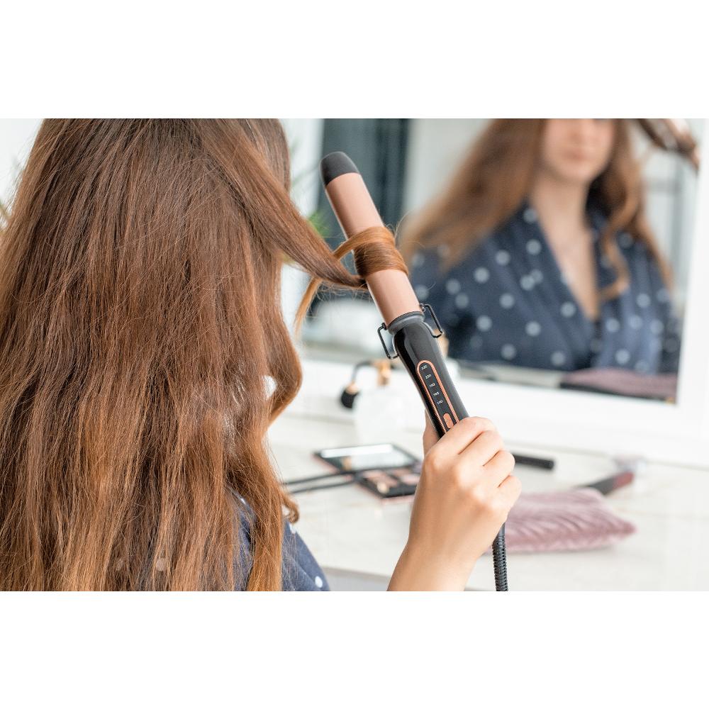 Nëse jeni të interesuar per flokë gjithmonë të valëzuar në mënyrë perfekte ky hekur për kaçurrela është përfekt për ju. Ka një diametër 33 mm dhe një dritë treguese për ndezje dhe fikje. Gjitashtu, spina e kordonit të rrymës mund të lëviz në 360 °AC që parandalon përdredhjen dhe ngatërresën. Kjo dredhuese është gati për përdorim mbrenda 60 sekondave. Dimensionet 58 × 56 × 225 mm