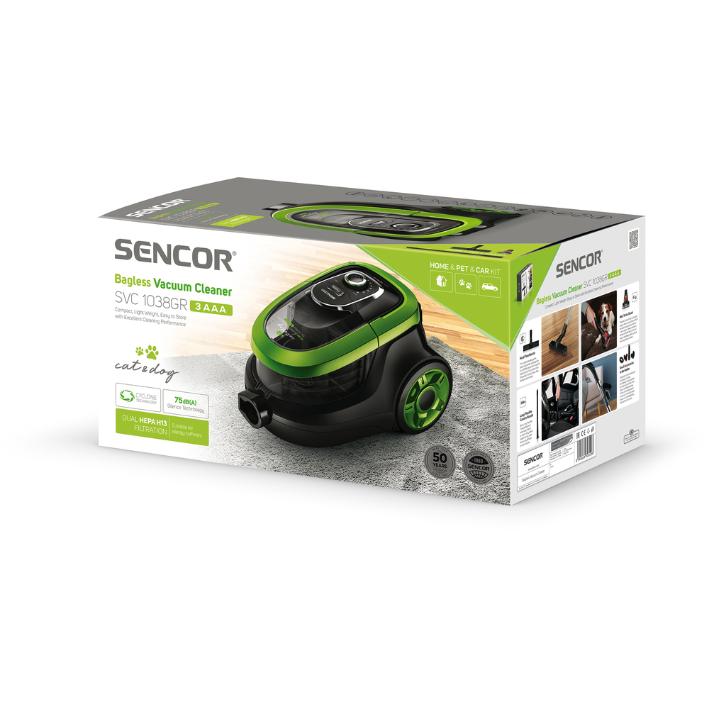 Fshesë elektrike Sencor SVC 1038GR 3AAA, 750W, e Zezë – Gjelbër