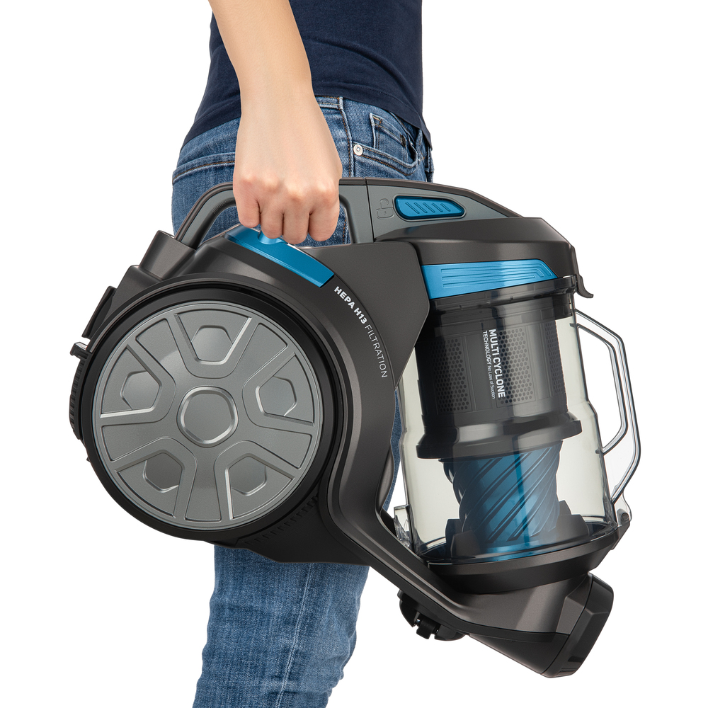 Fshesë elektrike pa thasë 4AAAA ECO Power, për pastrim të përsosur të çdo sipërfaqeje. Teknologjia multiciklone ofron performancë konstante pa humbje të fuqisë thithëse. Filtri Clean Air HEPA H13 siguron filtrim të lartë të përshtatshëm për ata që vuajnë nga alergjitë. Thithëse elektrike me efikasitet më të lartë të energjisë. Me klasë më të lartë të pastrimit për qilima, dysheme të fortë dhe filtrim të pluhurit. Zhurmë e ulët 78 dB(A) për thithëse me korrent të qetë. Ofron mbulimi 314 m2 për një numër minimal ndryshimesh të prizës elektrike. Rrezja e veprimit të thithëses është 10 m dhe gjatësia e kabllit është 7 m. Ka tub teleskopik metalik XXL me rregullim të lehtë të lartësisë ergonomike të punës dhe enë pluhuri me kapacitet 3.5 l. Ka rrota të buta për të mbrojtur dyshemetë dhe për lëvizje të qetë të thithëses me korrent. Ofron mbështjellje automatike të kabllove. Ka kontroll elektronik të fuqisë thithëse. Ka grykë universale të dyshemesë me furçë të tërhequr. Aksesorët shtesë janë gryka e kombinuar e dyshemesë, gryka e gjatë fleksibël e çarjes dhe furça e pluhurit. Thithësja ka dimensionet 460 × 275 × 330 mm. Ka ngjyrë të zezë dhe të kaltër.