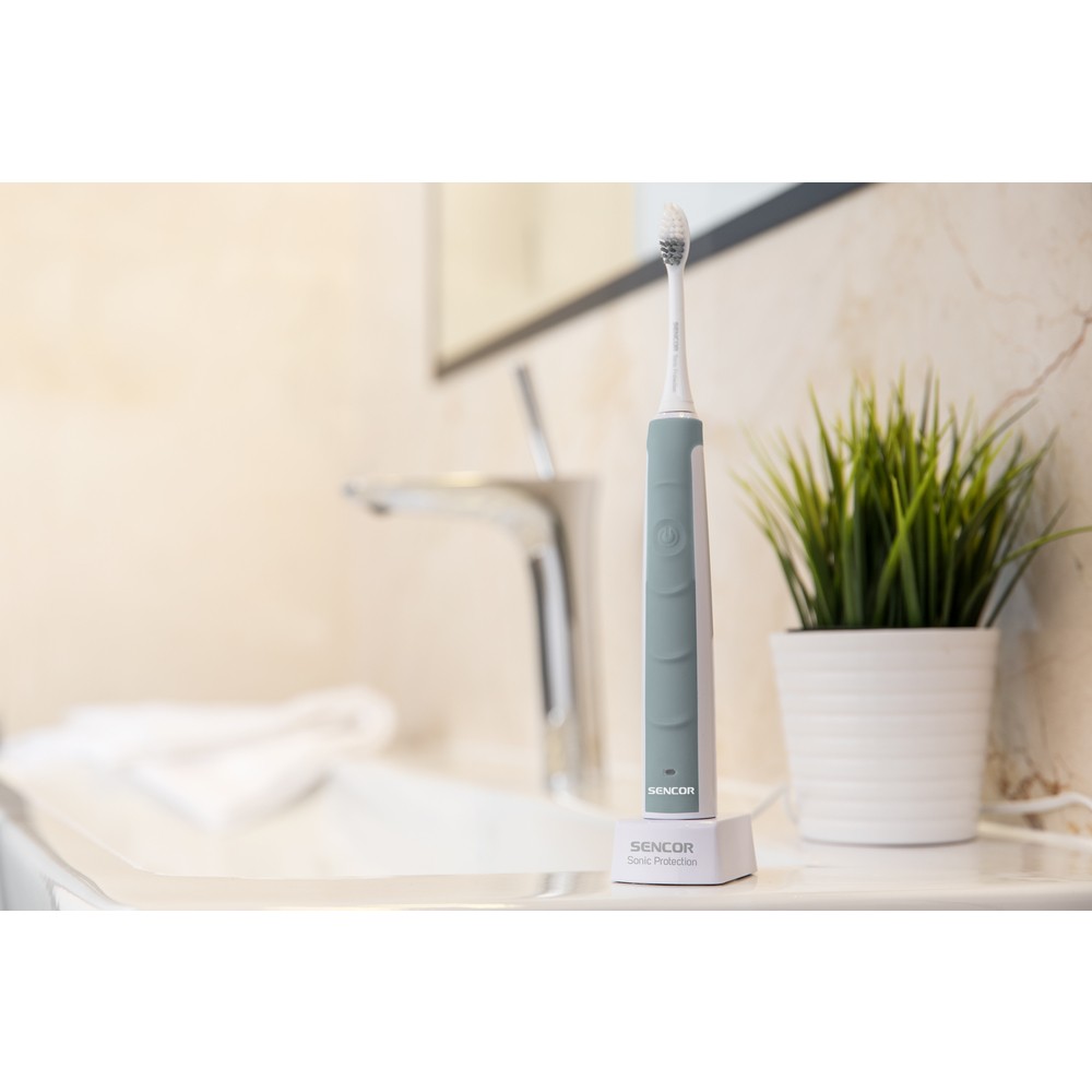 Për pastrim sa më efikas të dhëmbëve, marka Sencor ka sjellë në treg furçën elektrike SOC e cila e bën pastrimin e thellë të dhëmbëve dhe largon bakteriet e ndryshme. Mundësia për të vendosur deri në 10 mënyra të shpejtësisë dhe fortësisësi dhe shpejtësia e larjes deri në 41,000 në minutë. Doreza me formë ergonomike siguron trajtim të këndshëm. Shkalla e mbrojtjes rezistente ndaj ujit me konsum jashtëzakonisht të ulët IPX7 (mbrojtje kundër zhytjes në ujë) Jetëgjatësia e baterisë deri në 45 ditë me pastrim të përditshëm. Koka furçash të këmbyeshme si dhe teknologjia e reduktimit të zhurmës magnetike siguron funksionim të qetë <65 dB (A)Ka gjithashtu një memorie të mirë, mbanë mend çdo modalitet të caktuar dhe ndizet automatikisht kur e nis. Mund të konfigurohet thjesht me një buton dhe të konfirmoj fillimin me një dritë LED. Gjatë pastrimit, paralajmëron katër herë me një pauzë të butë vibrimi për të kaluar në anen tjetër të gojës dhe për të ndaluar automatikisht pas dy minutash. Kokat e saj luhaten në një mënyrë specifike për t’i mbajtur gjithmonë mishrat e dhëmbëve të shëndetshëm dhe dhëmbët tuaj të pastër. Gjendja e baterisë tregohet gjithmonë me LED. Mund të rimbushet kudo dhe mund ta merrni me vete kudo.