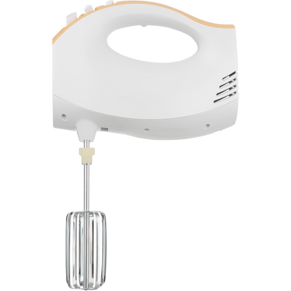 Mikseri i dorës me enën e integruar me vëllim 3.5l ëshë një mikser me 5 nivele shpejtësie. Mikseri do të funksionoj derisa ju mund të përdorni duart të shtoni përbërësit e dëshiruar. Seti përfshin: rrahëset prej çeliku dhe rrahëset për brumë. Butoni Turbo për shpejtësi maksimale dhe butoni për lirimin dhe heqjen e përshtatshme të pajisjeve. Lehtë për t’u pastruar dhe siguresa termike kundër mbinxehjes. Është i përberë nga material i kualitetit të lartë.