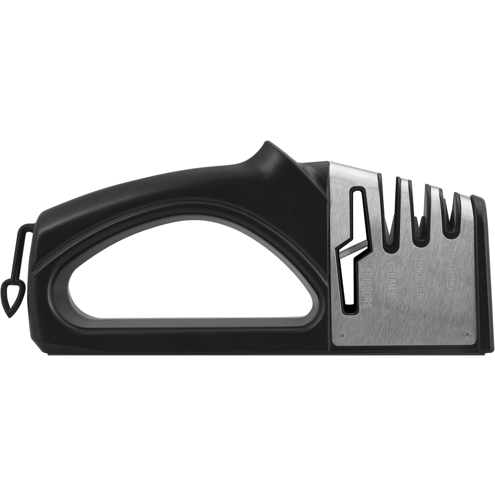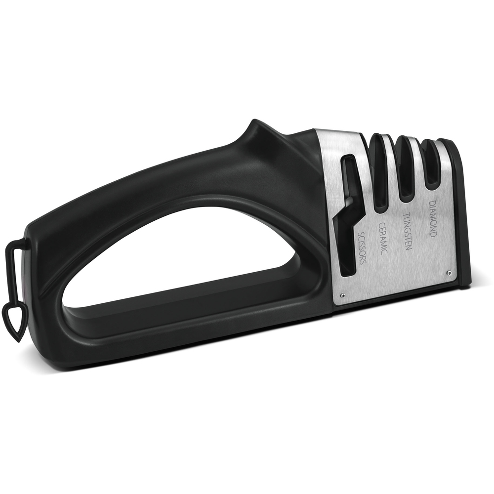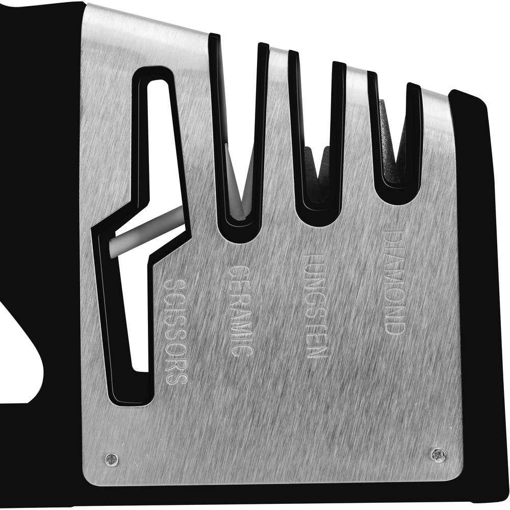 Mprehëse për thika dhe gërshërë me 3 faza, të bëra nga plastika të zbutura ABS me një bazë anti-rrëshqitëse. Disqet e mprehjes kanë gurë diamant për riparimin e tehut dhe ndreqjen përpara mprehjes. Disku është i pandryshkshëm prej tungsteni dhe mpreh thikën dhe rikthen “formën V” në teh. Mirëmbajtja dhe pastrimi bëhet duke përdorur një leckë të lagur dhe nuk është e mundur të zëvendësoni disqet mprehëse.