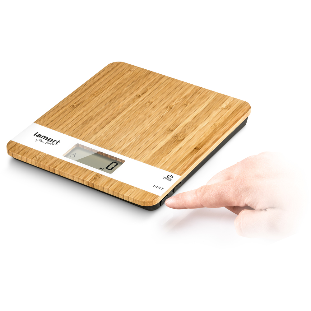 Peshore kuzhine me sensorë të kontrollit të prekjes për peshim të saktë dhe me një ekran të madh LCD. Ka sipërfaqe monolite për mirëmbajtje të lehtë dhe higjienike. Funksioni i peshës së kontejnerit të ri-peshimit dhe zerosjes graduale (TARA). Diapazoni i peshimit është deri në 5 kg (saktësia 1 g). Ka treguesin baterisë dhe mbingarkesës. Furnizohet pa bateri.