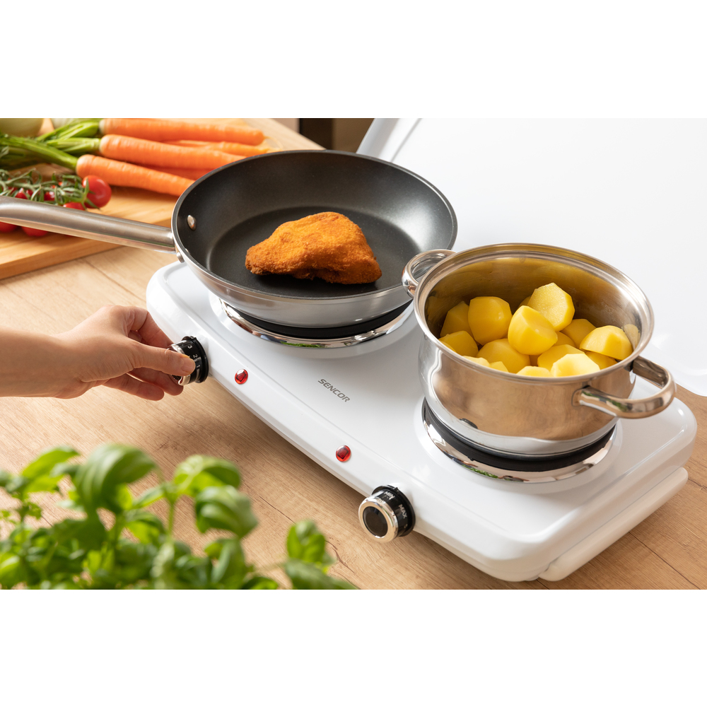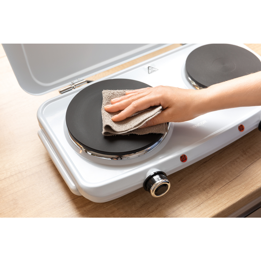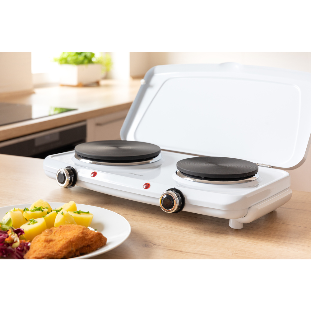 Dimensionet kompakte të kësaj pllake elektrike e bëjnë këtë pajisje ideale për konvikte kolegjesh, vila ose kampe. Kjo pajisje posedon dy pllaka për përgaditje më të shpëjtë të ushqimit. Ka një kapak të varur dhe gjithashtu këmbë kundër rreshqitjes të cilat e mundësojnë përdorimin më të lehtë dhe më të sigurt të kësaj pajisje. Ka dy drita treguese dhe gjithashtu sistem mbrojtës nga mbinxehja.