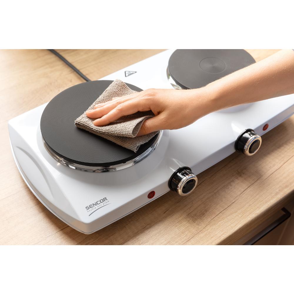Dimensionet kompakte të kësaj pllake elektrike e bëjnë këtë pajisje ideale për konvikte kolegjesh, vila ose kampe. Kjo pajisje posedon dy pllaka me diametër 18 dhe 15 cm për përgaditje më të shpëjtë të ushqimit. Këmbë kundër rreshqitjes të cilat e mundësojnë përdorimin më të lehtë dhe më të sigurt të kësaj pajisje. Ka dy drita treguese dhe gjithashtu sistem mbrojtës nga mbinxehja.