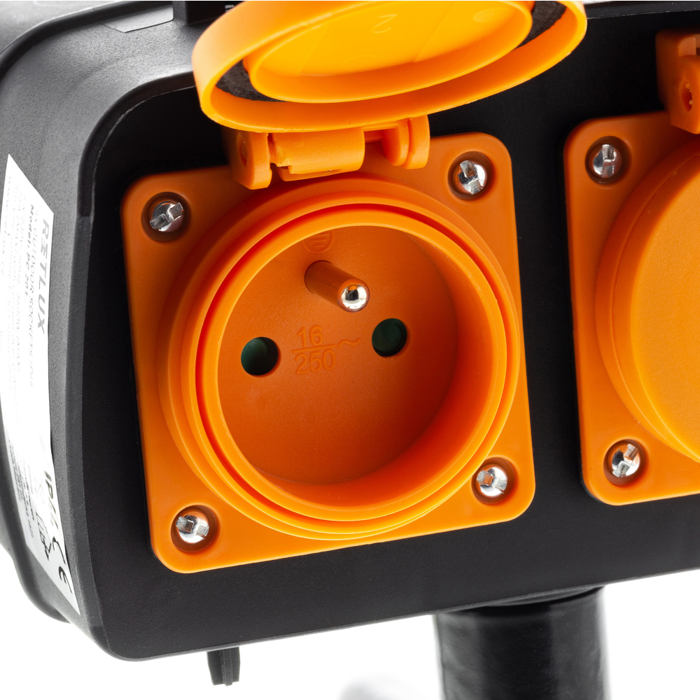 Priza për ambijent të jashtëm RETLUX RPC 201 me thumb plastike dhe mbajtëse metalike që vendoset në tokë. Priza për ambijent të jashtem kopshti është një zgjidhje e sigurt dhe me cilësi të lartë për punën tuaj. Varianti RPC 200 është bërë nga plastika me cilësi të lartë, e përshtatshme për përdorim në natyrë. Priza është e pajisur me një tel 5 metra të gjatë me një seksion kryq 3×1.5 mm2 me izolim gome,e cila lejon një ngarkesë maksimale deri në 16A / 3680W. Në pajisje gjenden 4 priza për vendosjen e kabllove për punë.