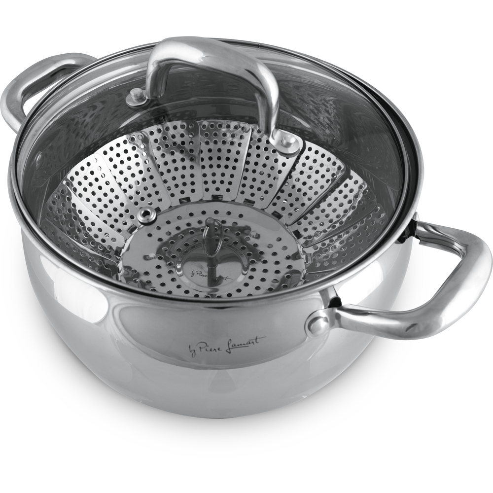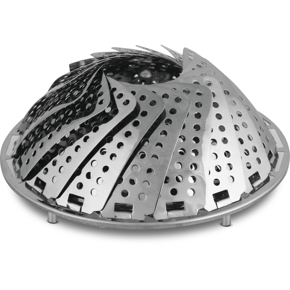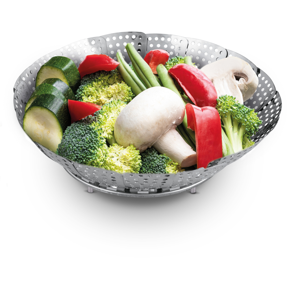 Një shportë e palosshme prej çeliku të pandryshkshëm është e përshtatshme për gatimin e petave dhe perimeve, duke ruajtur minerale dhe vitamina. Mund të përdoret në tenxhere me diametra të ndryshëm dhe ka diametrin 14/ 23 cm. Kur gatimi të ketë mbaruar ose nëse është e nevojshme mbushja e ujit, kulluesja mund të ngrihet lehtësisht nga tenxherja duke përdorur mbajtesen në mes. Para përdorimit të parë dhe pas çdo përdorimi, lajeni në ujë të ngrohtë me detergjent, shpëlajeni dhe thani. Mbani produktin larg mundësive të fëmijëve.