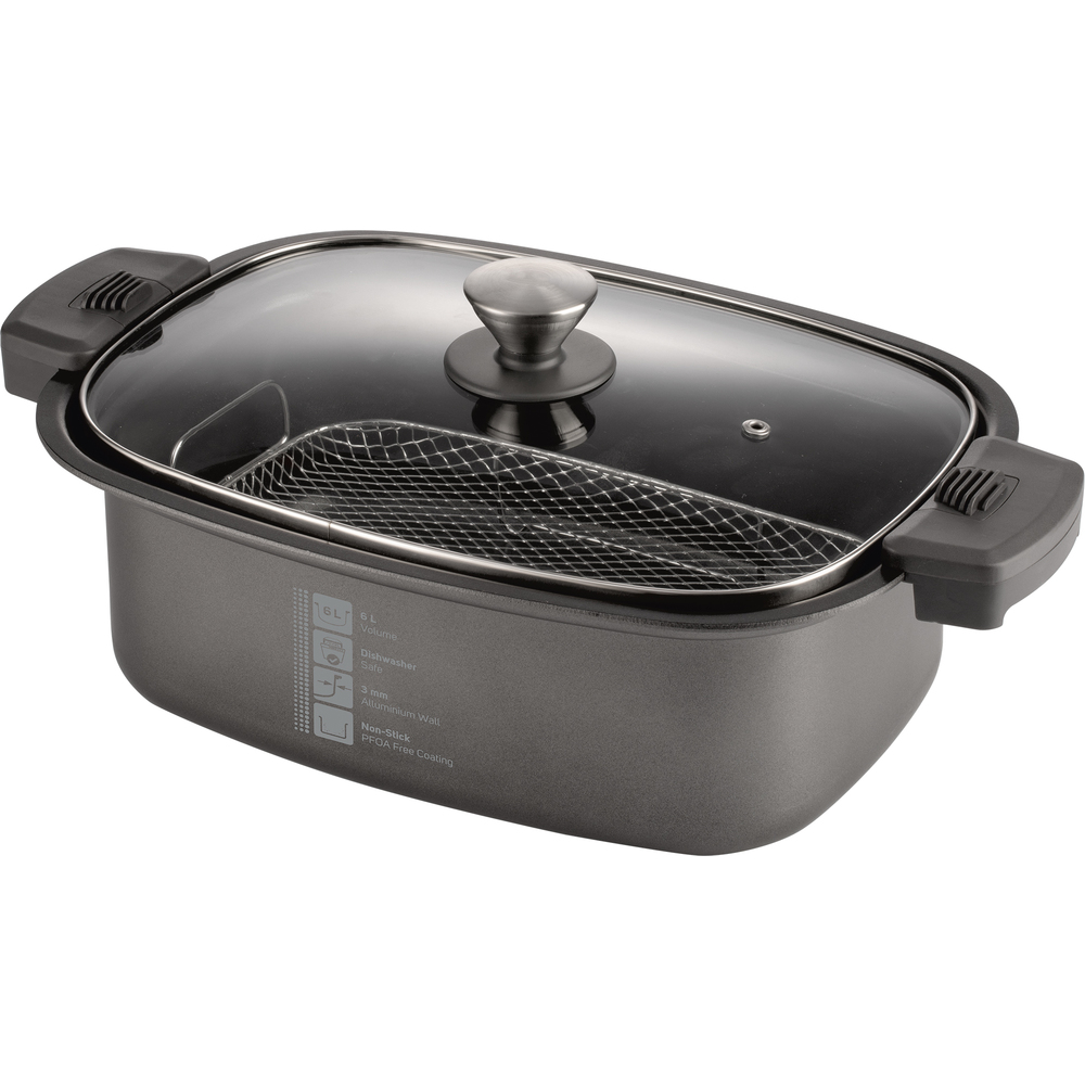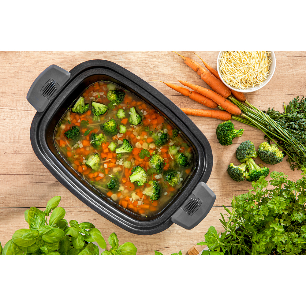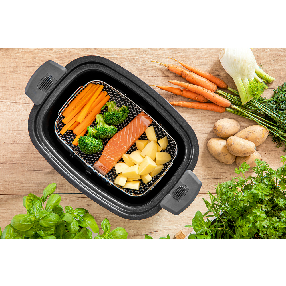 Përmbajtja e kutisë: tenxhere e ngadaltë me enë alumini 3 mm, shporta e avullit prej çeliku inox